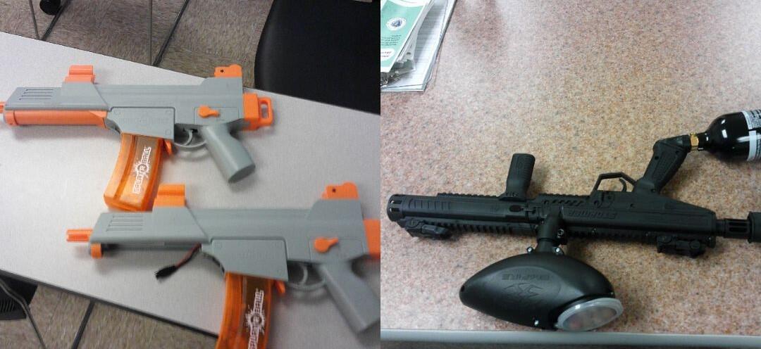 While searching the vehicle during the stop, officers located and seized several paintball guns. As a result of the search and subsequent investigation, DECHAINE, RAPOSO, HOBBS and the 17-YEAR-OLD MALE JUVENILE were arrested without incident.