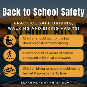 As the new school year begins, it is everyone’s responsibility to keep students safe — on the roads and beyond. Drivers should be alert on the roads and pay careful attention to school-related traffic laws such as speed limits in school zones, yielding to pedestrians at crosswalks, and stopping for school buses when their lights are flashing and stop arms are extended. Parents and guardians can also offer their students safety tips. Children waiting for75