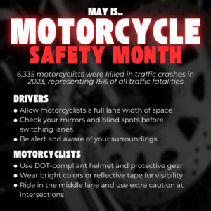 Motorcycle Safety Month is observed every year in May. As the weather gets warmer and more motorcyclists are on the road, the initiative raises awareness…
